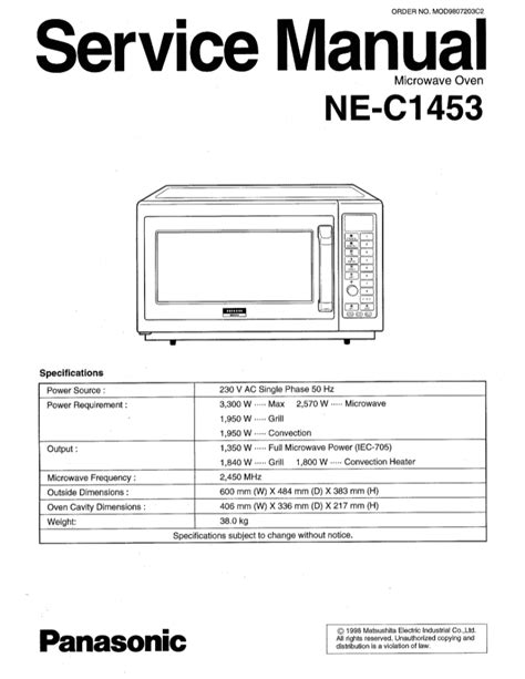 Read Online Panasonic Microwave Repair Manual Library Binding BookBoon
